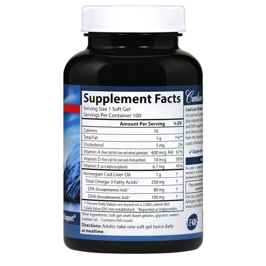 Carlson Cod Liver Oil Gems Super 1,000 mg 100 Softgels Heart Health, Brain Function