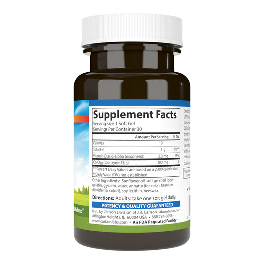Carlson CoQ10 300 mg 30 Soft Gels Energy Production, Heart Function & Optimal Wellness