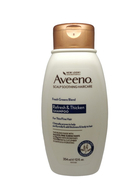 Aveeno Fresh Greens Blend Sulfate-Free Shampoo with Rosemary, Peppermint & Cucumber Refresh & Thicken, 12 fl.oz / 354ml