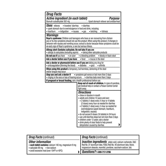 Pepto Bismol 48 Chewable Tablets, for Relief of Gas, Anti Diarrhea, Heartburn, Nausea, Upset Stomach, and Indigestion