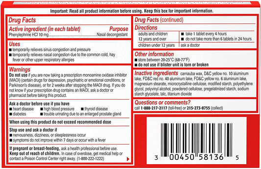 Sudafed PE Sinus Congestion Maximum Strength Nasal Decongestant 10mg, 36 Tablets