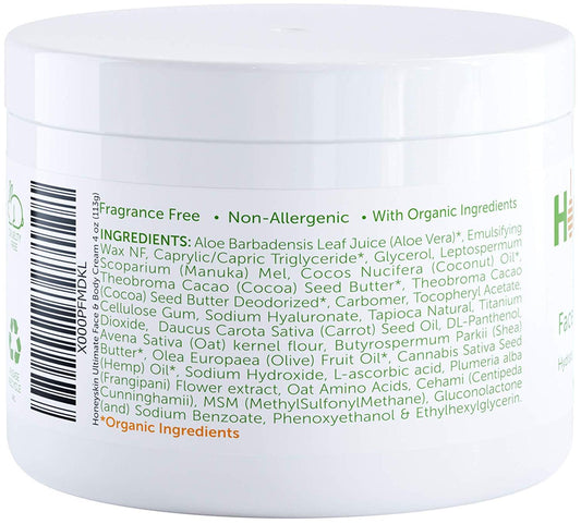HoneySkin Face and Body Cream Moisturizer - Nourishing Aloe Vera - Manuka Honey for Rosacea Eczema Psoriasis Rashes Itchiness Redness - Natural Organic Cracked Skin Relief - Anti Aging - Anti Wrinkle (4 oz)