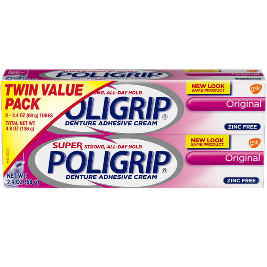 Super Poligrip Original Formula Denture Adhesive Cream Twinpack (68 g)