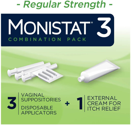 Monistat 3 Day Yeast Infection Treatment Vaginal Suppositories With Applicators + External Cream (Combination Pack 3)