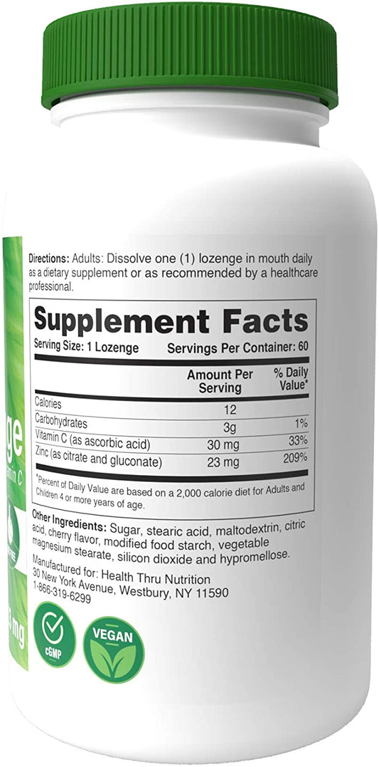 Health Thru Nutrition Zinc Lozenge with Vitamin C 23 mg, 60 Lozenges