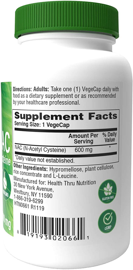 Health Thru Nutrition NAC 600 mg N-Acetyl Cysteine, 60 Vegecaps Cellular Antioxidant