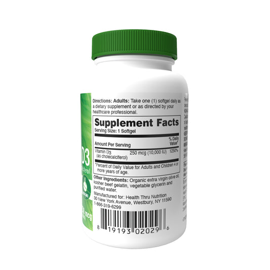Health Thru Nutrition Vitamin D3 10,000iu (NON-GMO) 120 Softgels