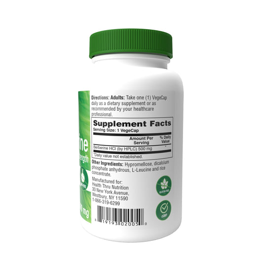 Health Thru Nutrition Berberine HCL 500 mg Non-GMO, 120 Vegecaps Healthy Insulin Levels