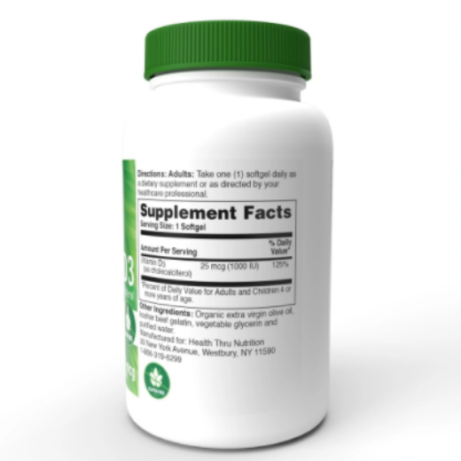 Health Thru Nutrition Vitamin D3 25mcg 1000 IU Cholecalciferol, 100 Softgels