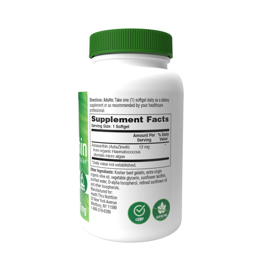 Health Thru Nutrition Astaxanthin 12mg (as AstaZine Organic Algae) NON-GMO) 30 Softgels Healthy Skin and Vision