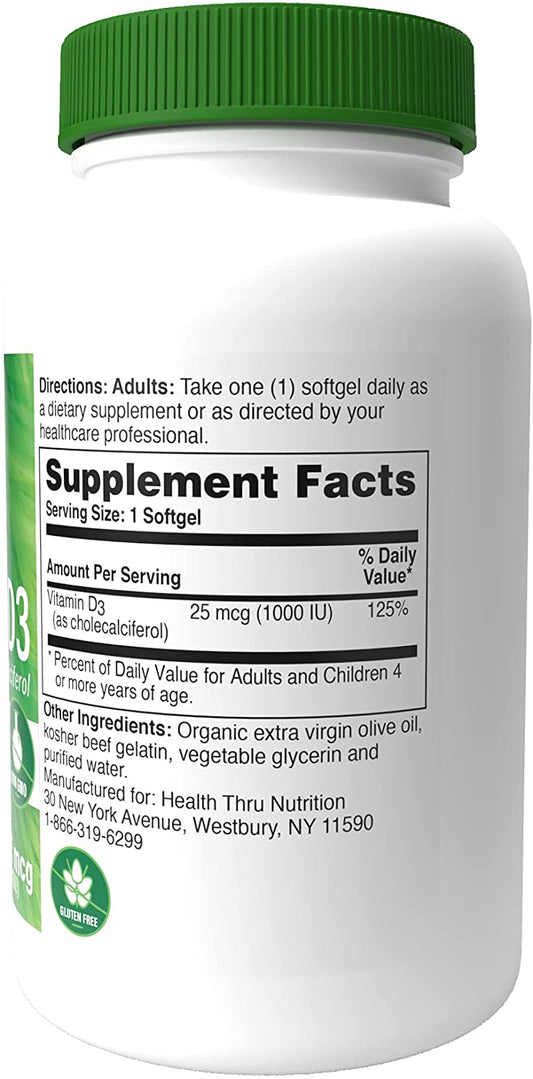 Health Thru Nutrition Vitamin D3 1000 IU, 25 mcg, 360 Softgels