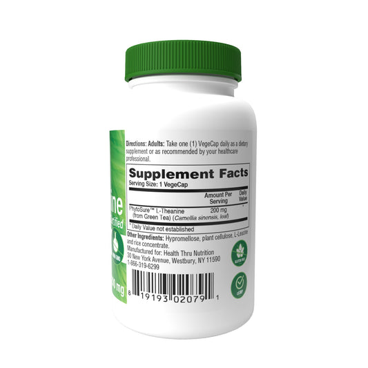 Health Thru Nutrition L-Theanine (as PhytoSure™) 200mg (NON-GMO) 60 Vegecaps Relaxation and Focus