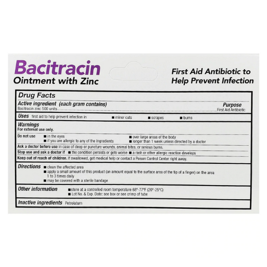 First Aid Bacitracin Ointment with Zinc, 28 g / 1 oz.