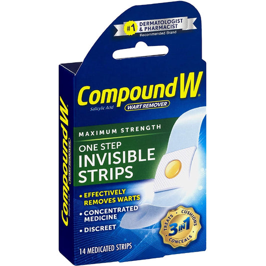 Compound W One Step Invisible Strips, Wart Removal, 14 Medicated Strips