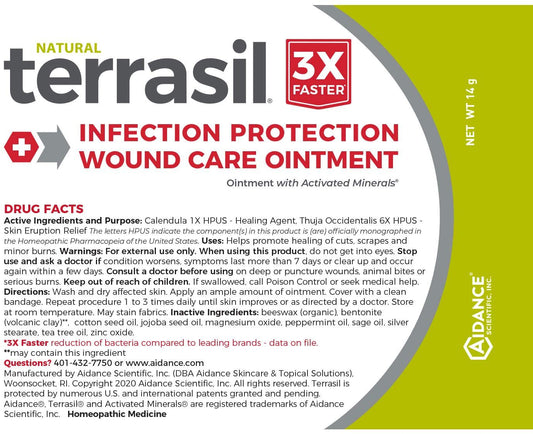 Terrasil Wound Care Infection Protection Ointment for bed sores, cuts scrapes and burns 14 g