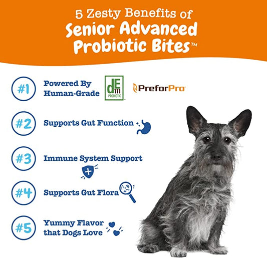 Zesty Paws Senior Advanced Probiotic Bites Gut Health for Dogs, Chicken Flavor, 90 Soft Chews, 12.7 oz
