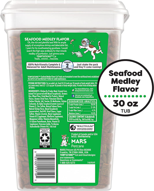 Temptations Crunchy Outside and Soft Inside Treats For Cats Seafood Medley Flavor 30Oz / 850g