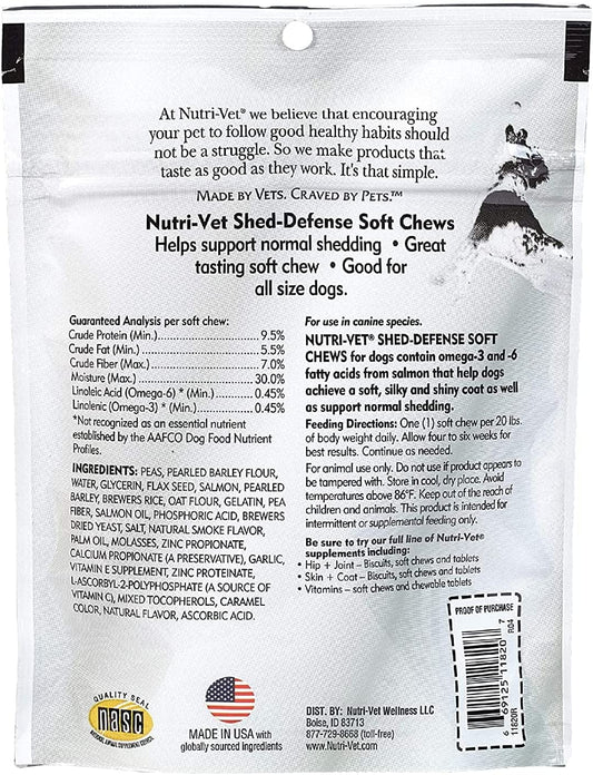 Nutri-Vet Shed Defense Soft Chews for Dogs Hickory Smoke Flavor, 5.3OZ APPROX. 60 SOFT CHEWS