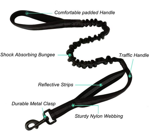 Rabbitgoo Tactical Bungee Dog Leash, 37 inches to 49 inches long for Small Medium Dogs, Black