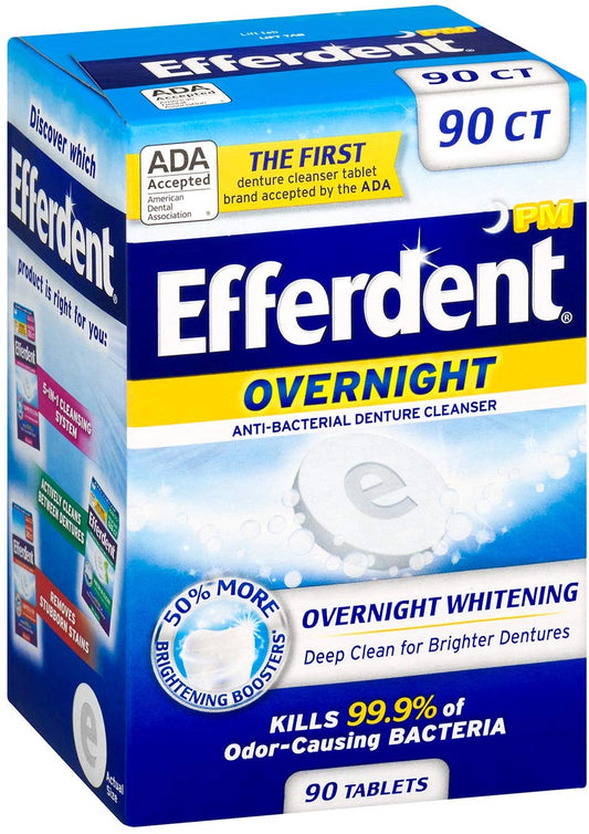 Efferdent PM Overnight Anti-Bacterial Denture Cleanser, 90 Tablets