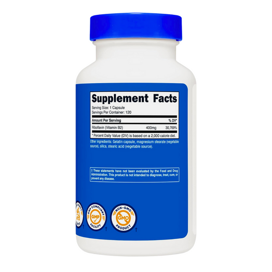 Nutricost Vitamin B2 Riboflavin 400mg Supplement 120 Capsules
