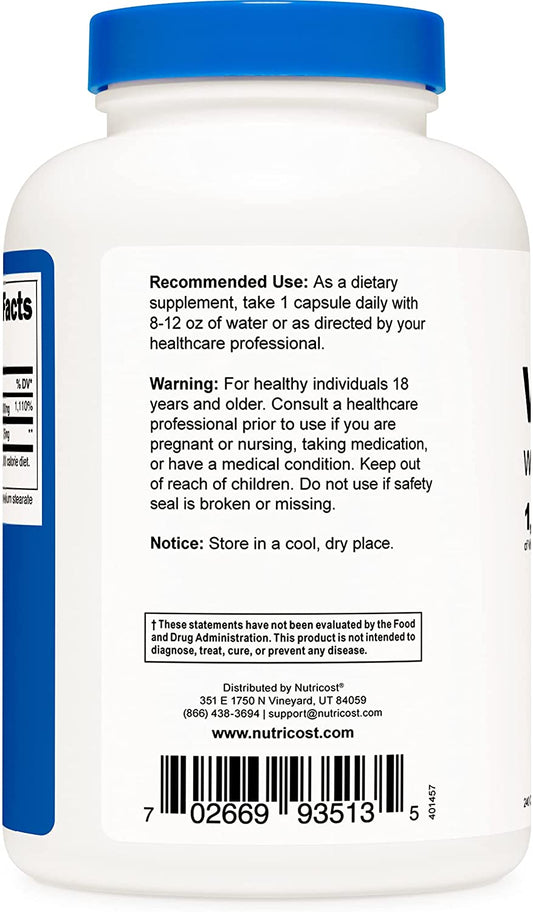 Nutricost Vitamin C with Rose Hips 1000mg Dietary Supplement 240 Capsules