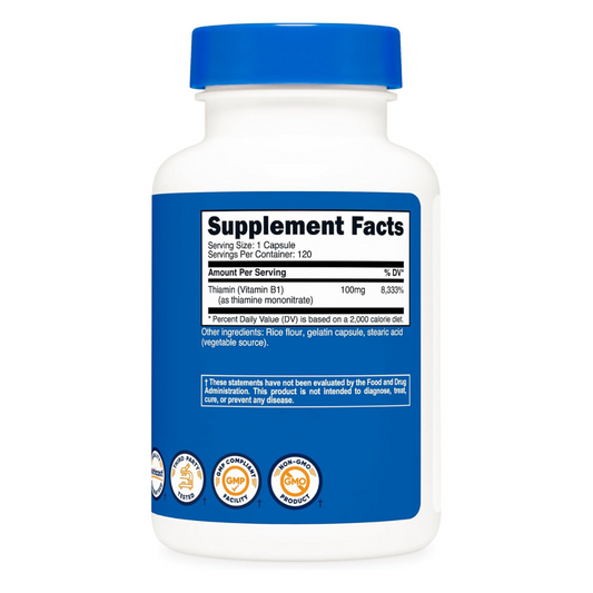 Nutricost Vitamin B1 Thiamine Mononitrate 100mg Supplement 120 Capsules