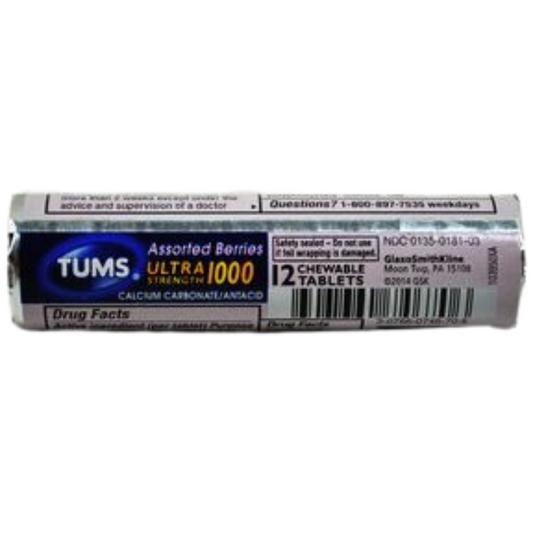 TUMS Ultra Strength Assorted Berries Antacid Chewable Tablets for Heartburn Relief (12 ct in 1 pack)