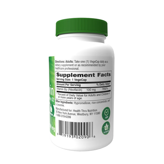 Health Thru Nutrition Riboflavin as Vitamin B2 100mg 100 VegeCaps Supports Healthy Metabolic Function
