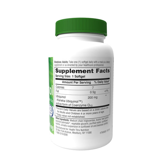 Health Thru Nutrition Ubiquinol (Kaneka™) CoQ10 200mg (NON-GMO) 30 Softgels Superior Absorption