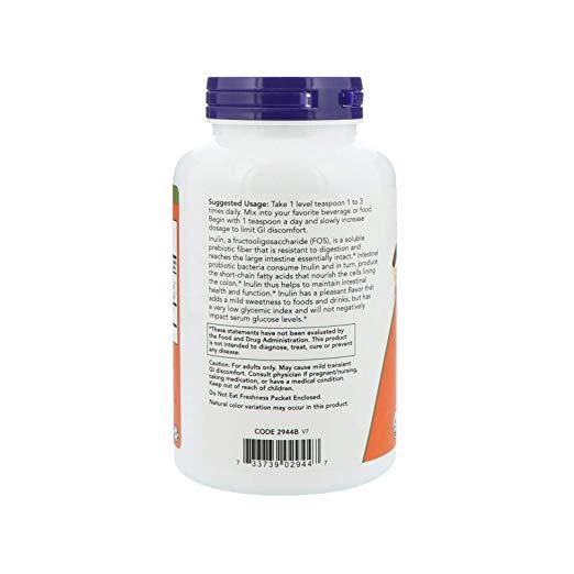 Now Foods Certified Organic Inulin Pure Powder, Prebiotic Intestinal Support 8 oz