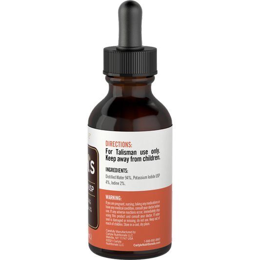 Carlyle Lugol's Solution 2% USP Distilled Water 94% Potassium Iodide 4% Iodine 2% GMP 2fl.oz. 59mL