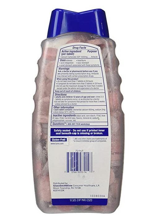 Tums Chewy Bites Assorted Berries Extra Strength 750 (108 Chewable Tablets)
