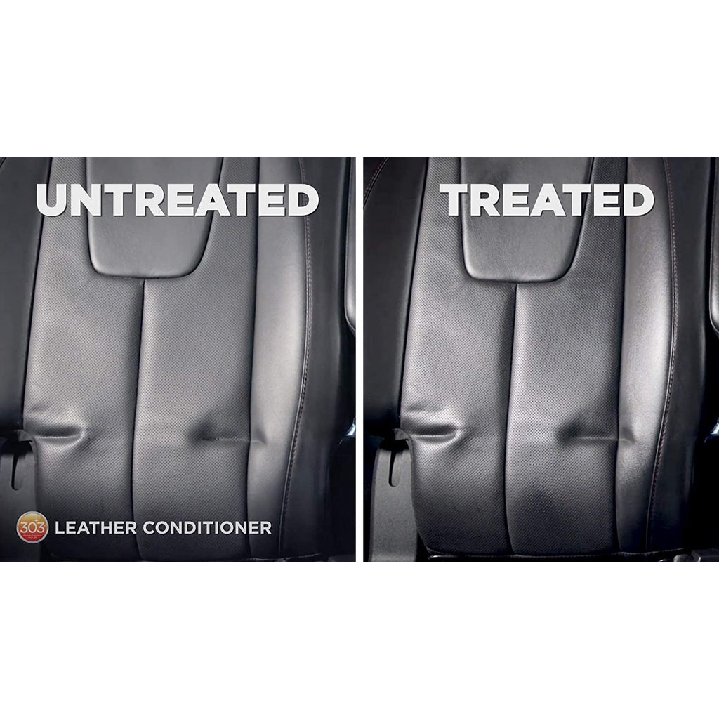 100% AUTHENTIC AND FROM THE USA. Step 2 in our 2 step Leather system. 303 Leather Conditioner softens and protects all your leather surfaces, finished or unfinished. The added UV protection will keep your leathers from fading, cracking, and aging. Another key feature is the added defense against stains! The formula repels liquids to protect the leather from any unwanted spills. Keep your leather looking like new with 303 Leather Conditioner.