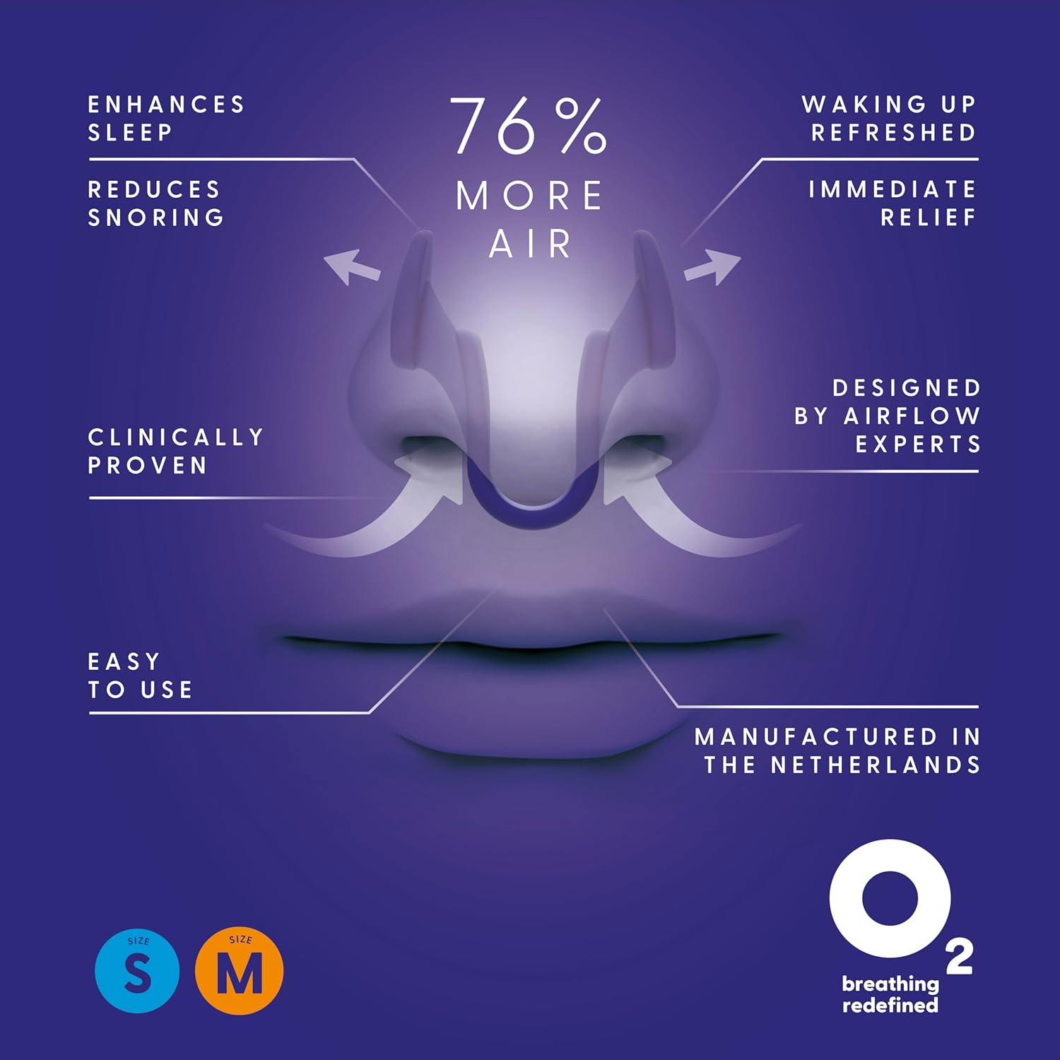 Airmax nasal spreaders improve airflow by 76%, offering better results than nasal strips and providing sinus pressure relief. They help reduce snoring by eliminating vibrations. Reusable for up to two months. Available in small and medium sizes, developed by specialists.