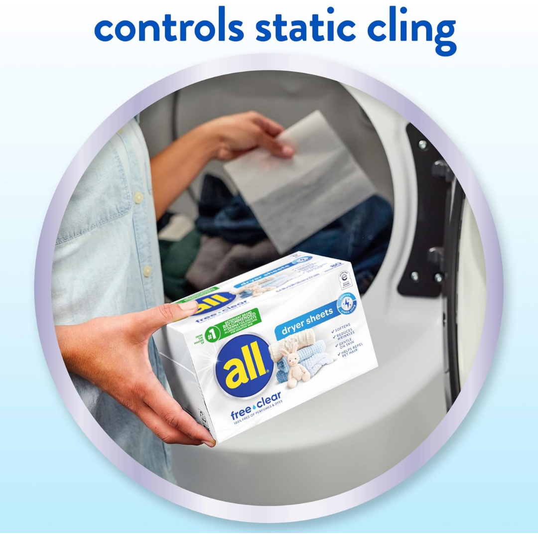 Make fabrics softer and more comfortable against your family’s sensitive skin with all Fabric Softener Dryer Sheets for Sensitive Skin. Leave fabrics virtually static-free, more comfortable on sensitive skin, and free of irritating residue with these specially-treated dryer sheets. Made by the 1st detergent brand recommended by dermatologists for sensitive skin, these hypoallergenic dryer sheets is 100% free of dyes and perfumes. Toss in a sheet with a load in your dryer for clothes and bedding that are gentle on the skin. Use with all Free Clear detergent and fabric softener to clean and soft clothes with static cling reduction in the dryer. This box contains 120 dryer sheets.