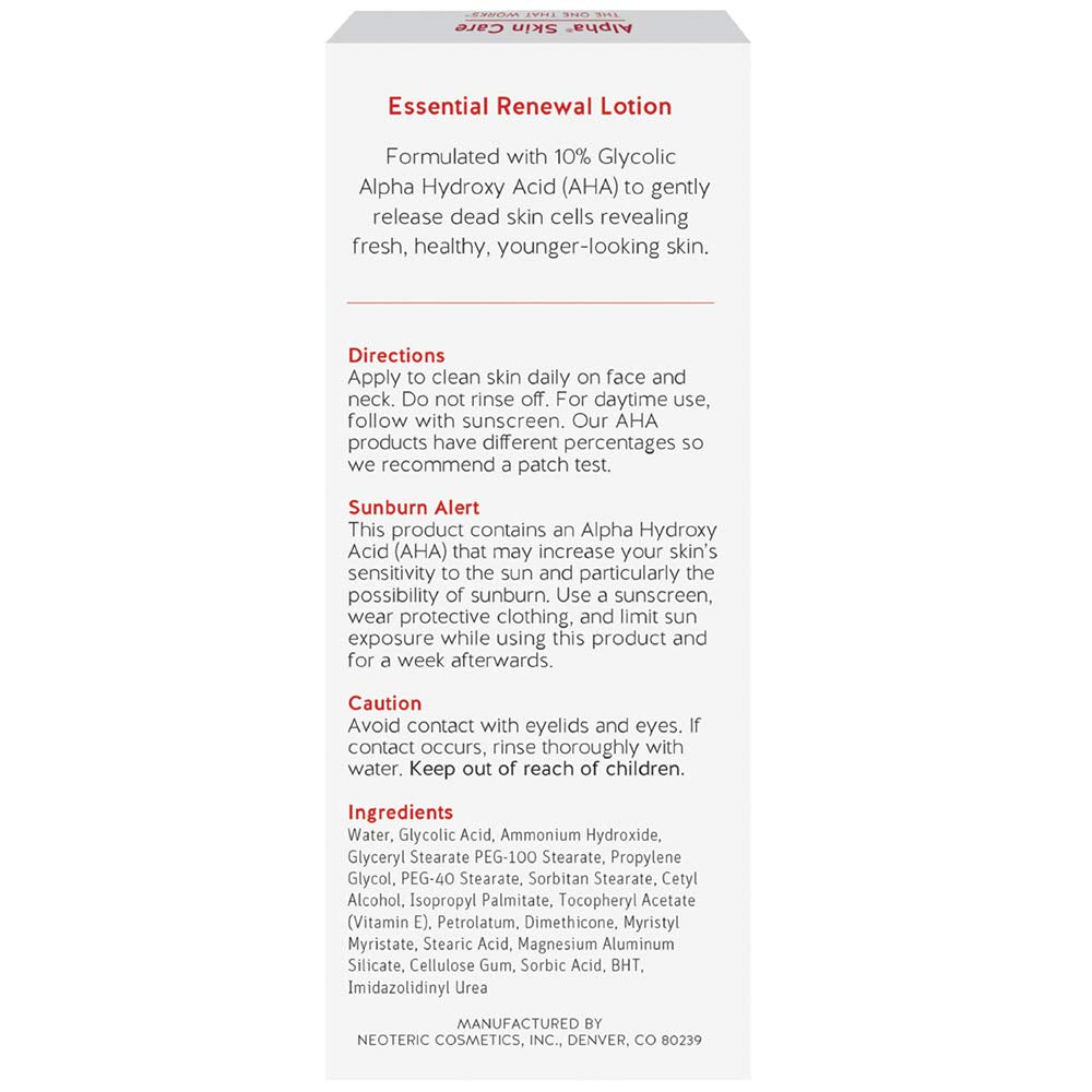 Alpha Skin Care Essential Renewal Lotion 10% Glycolic AHA for Fine Lines & Wrinkles, 4 fl.oz / 118 ml