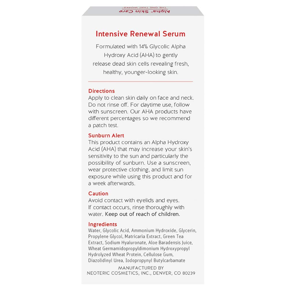 Alpha Skin Care Intensive Renewal Serum 14% Glycolic AHA for Fine Lines & Wrinkles, 2 fl.oz / 59 ml