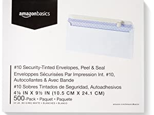 Amazonbasics 500-pack #10 Security-Tinted Envelopes, Peel & Seal, 1 Count