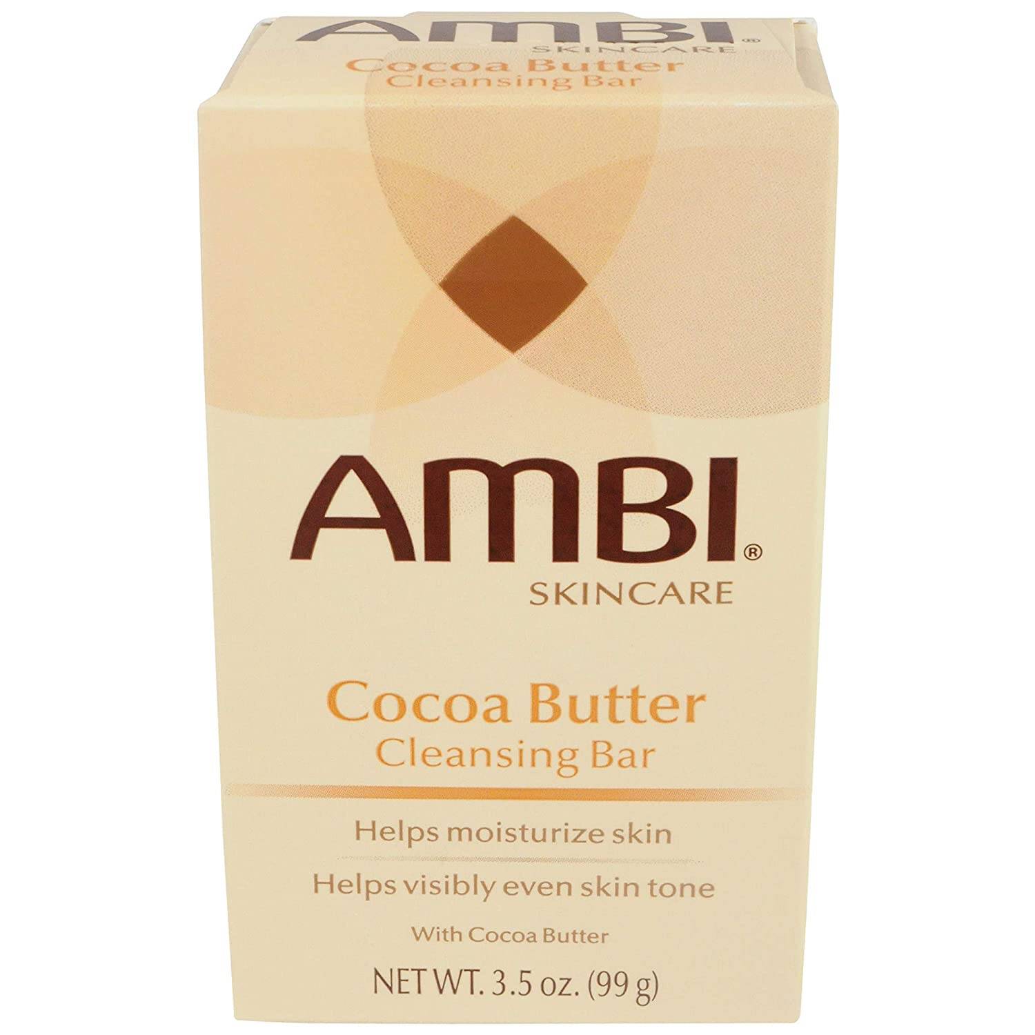 Helps naturally moisturize skin Helps visibly even skin tone With Cocoa ButterAmbi Cocoa Butter Cleansing Bar goes beyond cleansing to naturally moisturize and help you even out skin tone. It is enriched with cocoa butter to help soften and smooth dry skin. It's creamy, rich lather gently yet effectively washes away surface impurities to reveal clean, smooth even-looking skin. Ambi invites you to try other products in our line: Ambi Fade Cream Ambi Even Clear Exfoliating Wash Ambi Even Clear Daily Moisturizer with SPF 30 Ambi Even Clear Acne Clearing Treatment.
