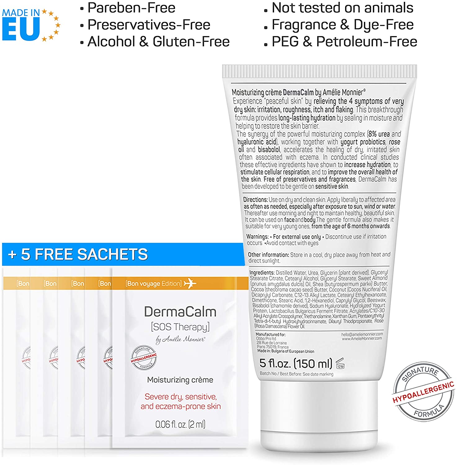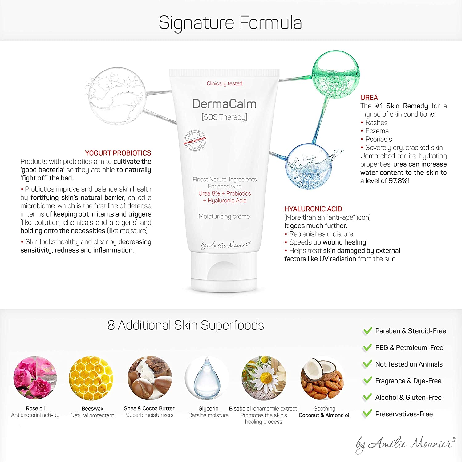 Amelie Monnier DermaCalm (SOS Therapy) Moisturizing Cream with 8% Urea, Probiotics & Hyaluronic Acid, 5 fl.oz / 150ml