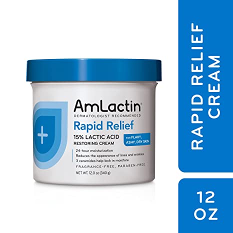 Experience 24-hour moisturization with AmLactin Rapid Relief Hydrating Cream. Formulated with 15 percent lactic acid, plus three ceramides, this exfoliant moisturizing cream helps lock in moisture for visibly soft skin. A non-greasy body moisturizer and hand moisturizer for dry skin, AmLactin Rapid Relief Body Cream is also fragrance-free and paraben-free. It instantly transforms your skin's appearance for visibly soft, youthful-looking skin. AmLactin body and hand cream helps relieve symptoms of skin conditions such as keratosis pilaris and dry skin and comes in a convenient tub for easy application! Help relieve dry skin with AmLactin moisturizers, the Number 1 Dermatologist Recommended Moisturizer Brand with Lactic Acid.