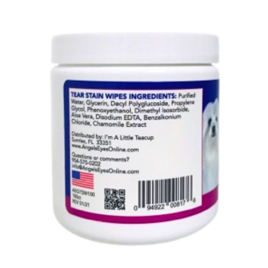 Angels’ Eyes Gentle Tear Stain wipes are recommended to help remove dried mucus secretions, discharge, and tear stains. Use daily to keep eye exterior clean and help reduce the risk of eye irritations and itching caused by foreign matter, our unique formulation requires no rinsing.