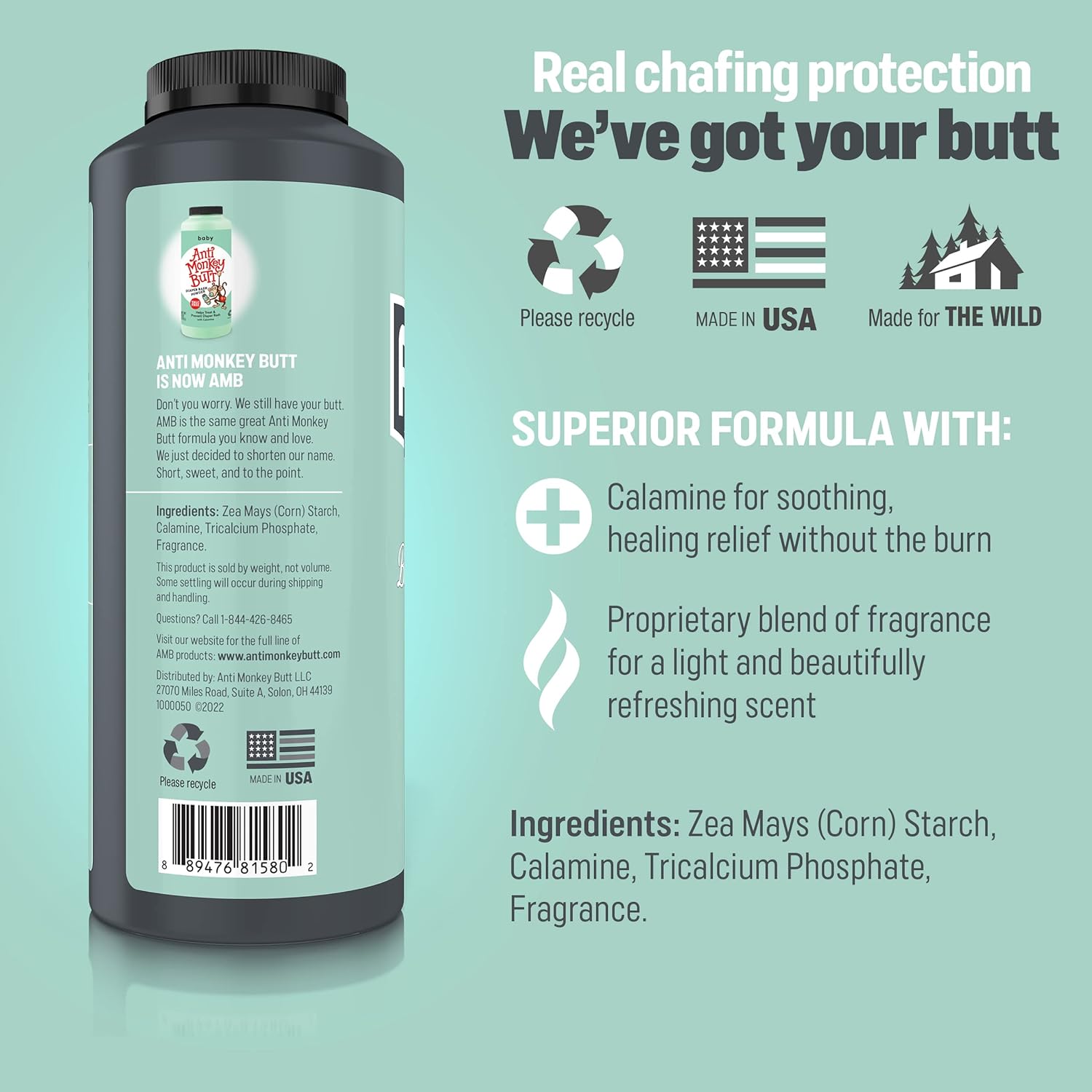 Baby Anti Monkey Butt Diaper Rash Powder was born from the desire to prevent diaper rash and other skin irritations. Our powder contains cornstarch and a smooth blend of calamine, an ingredient long known for its medicinal properties. These ingredients are therapeutic, safe and aid in healing skin irritations.