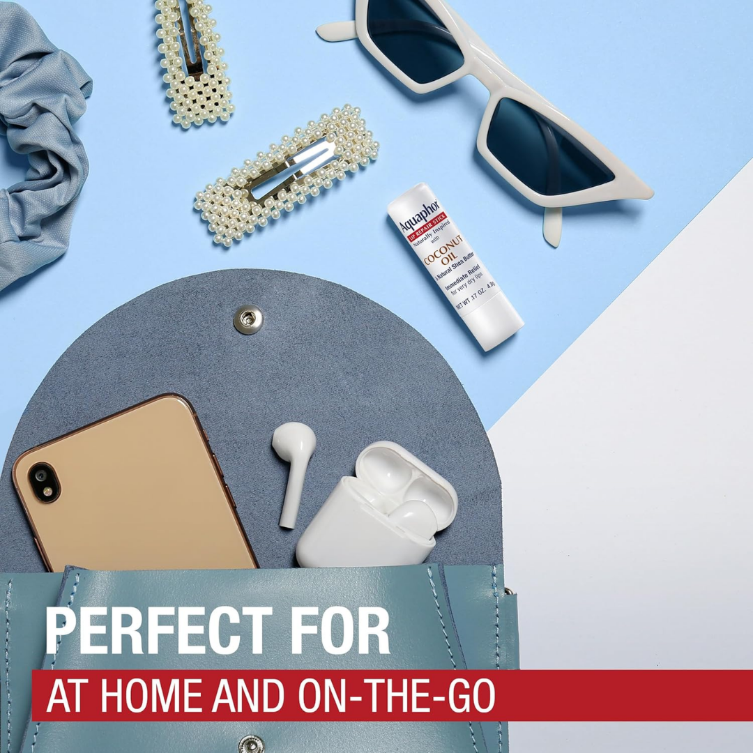 Keep your lips soft and smooth with Aquaphor Lip Repair Stick with Coconut Oil. This gentle lip care stick provides long-lasting moisture to help relieve dry, cracked lips. Enriched with coconut oil, shea butter, and other nourishing ingredients, it helps soothe and protect delicate skin while maintaining natural moisture balance. Its fragrance-free, preservative-free formula is suitable for sensitive skin and everyday use. The convenient stick format glides on easily without feeling greasy or sticky. Perfect for daily care, especially in dry or cold environments. Comes in a pack of three, so you can keep one at home, in your bag, or at work.