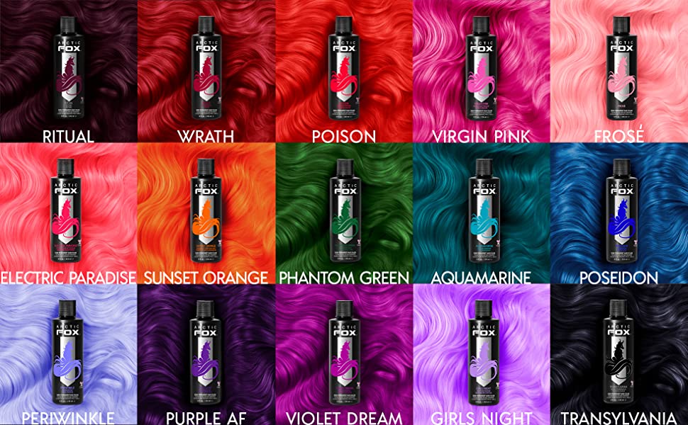 No harmful chemicals in Arctic Fox hair dye that damage the hair like chemical based hair colors., Made only from vegan ingredients with no animal by-products., Arctic Fox hair dyes are gentle for frequent use and actually conditions your hair as it restores vibrancy., Long lasting Colors, Smears Less, Sweet Scent, No Peroxide, No Ammonia, No Ethyl Alcohol, No PPD.