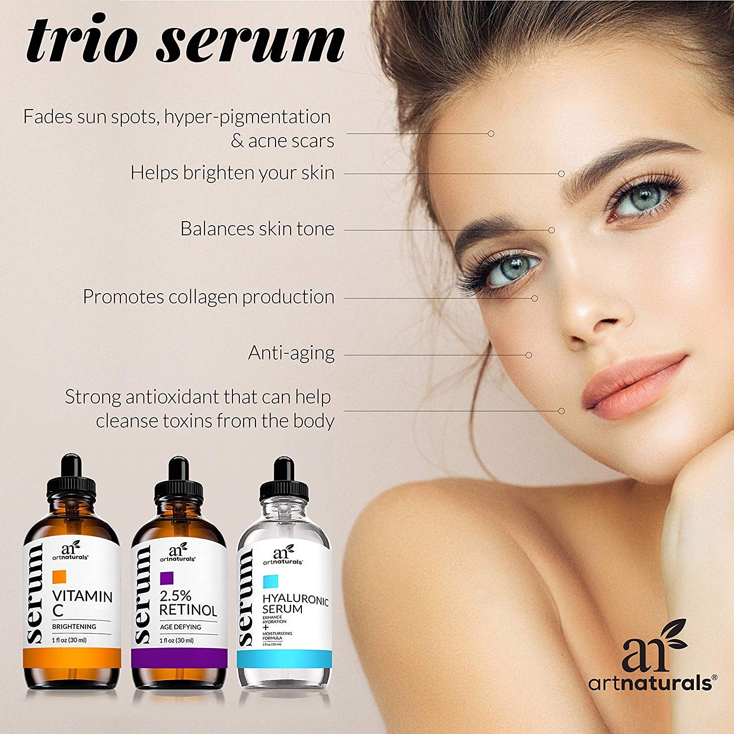ArtNaturals Anti-Aging Set with Vitamin-C Retinol and Hyaluronic-Acid (3 x 1 fl oz) Serum