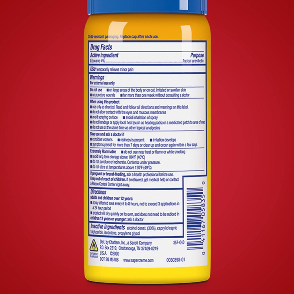 Aspercreme Relief Spray Fast Acting Quick Dry Fragrance Free 4 oz.(113 g)