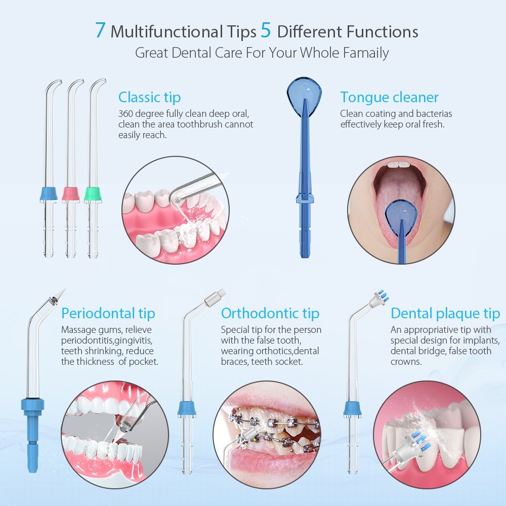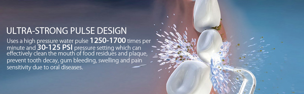 - Oral irrigator easily dislodges anything stuck between your teeth in a matter of seconds, so that dental water flosser can provide excellent water flossing performance to improve gum health and achieving good oral hygiene.