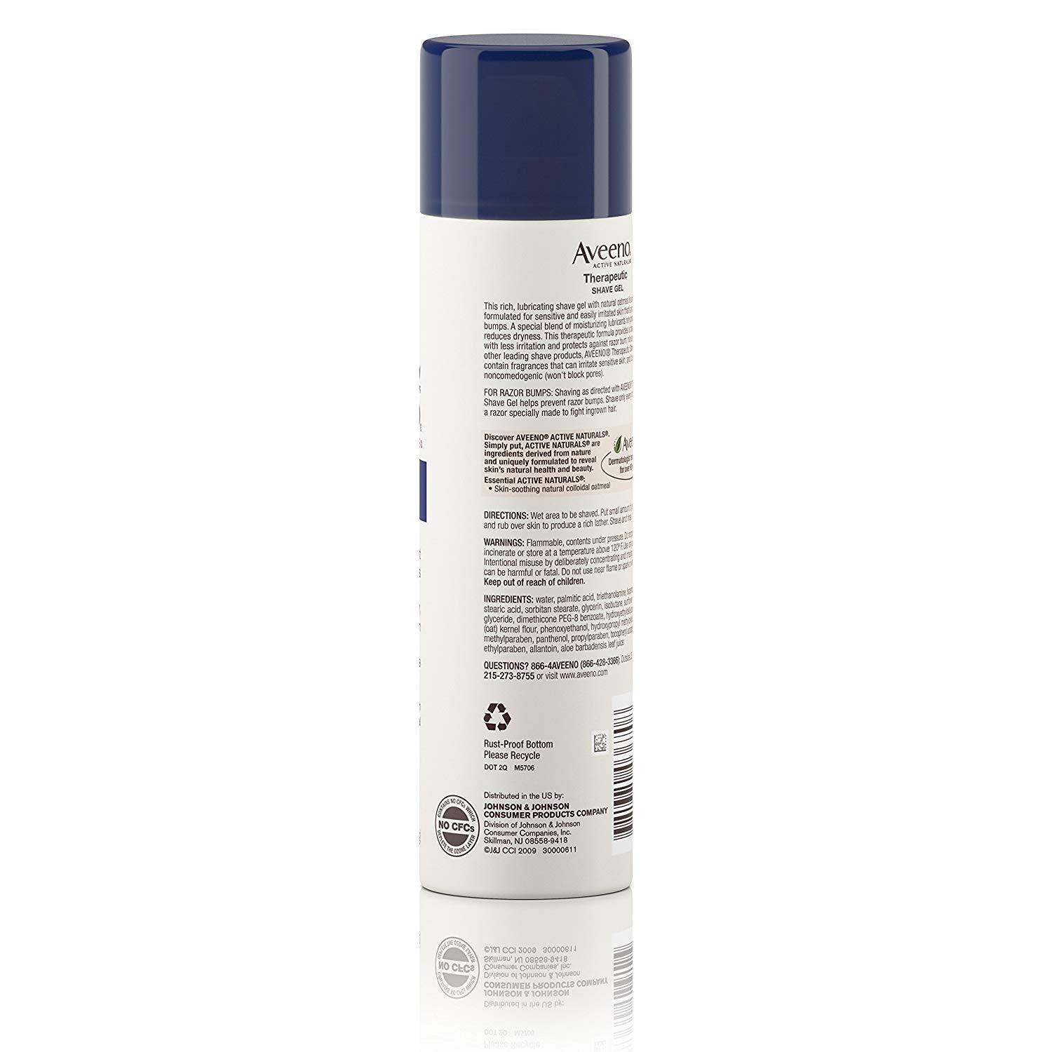 - Aveeno Therapeutic Shave Gel helps hydrate and protect skin against razor bumps during shaving. Formulated for dry, sensitive skin, this lubricating shave gel provides a close, smooth shave to prevent razor bumps, nicks, and cuts. The formula combines moisturizing lubricants with Active Naturals Oatmeal, which helps moisturize and relieve dryness. Recommended by dermatologists, Aveeno Therapeutic Shave Gel has no added fragrance that can irritate sensitive skin.
